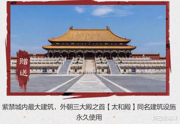 作为紫禁城内最大的建筑、外朝三大殿之首的太和殿,这次也将作为游戏内可永久使用的建筑设施送给玩家。