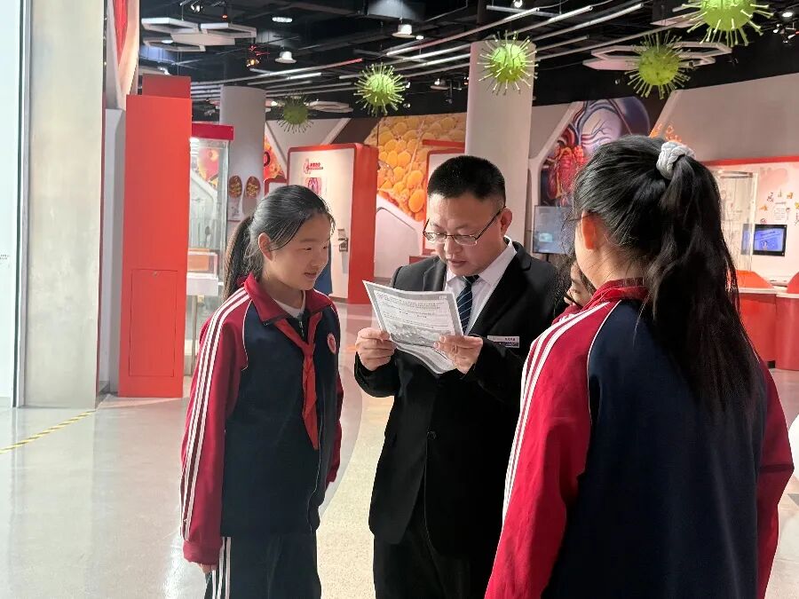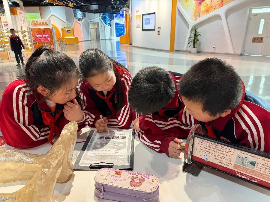 为了让研学更具针对性与实效性,同学们在主展厅开启了研学任务单闯关之旅。孩子们围绕展品背后的科学原理、现象背后的知识逻辑展开探索。