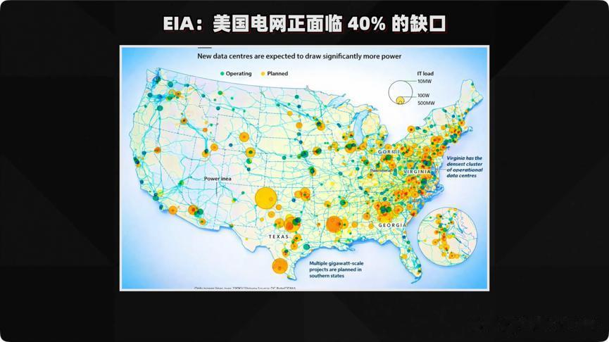 讨论核能复兴,离不开一个基础事实:科技界的焦点已从几年前H100产能、HBM迭代与2nm制程,转向更根本的制约——能源。有统计显示,美国目前聚集全球约40%的数据中心容量,总电力需求达51GW,约占全美峰值用电的5%~6%。然而根据EIA预测,到2028年全美将新增44GW需求,未来三年实际可接入电网的电量仅25GW,意味着超过40%的新增需求无法被满足。