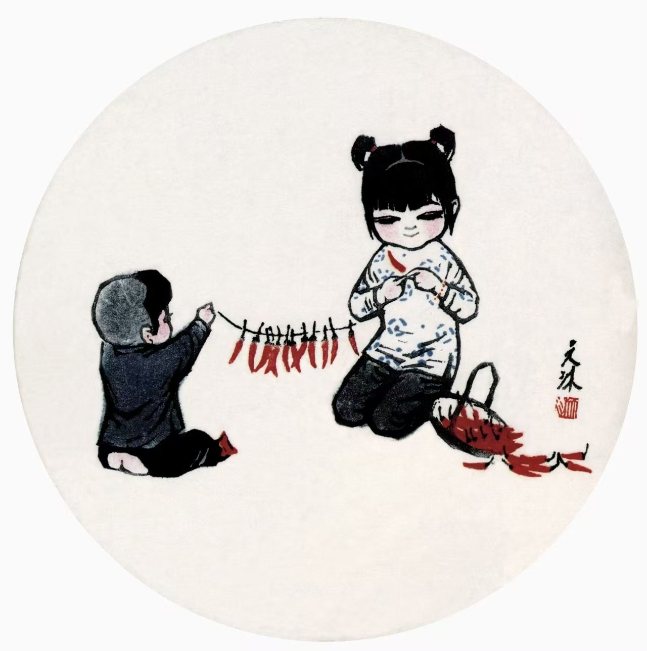 他用较为写实的方式画这些内容,但是又不会过于留恋于生活景象的复制。长期的艺术实践活动,使他懂得提炼在艺术创作中的重要性。另外,对于国画的认识,也让他不会轻易地陷入到极度现实的情境中。他说:“国画所表现的既不是纯主观的内容,也不是纯客观的内容,而是主客观结合后的内容,是似与不似的境界。”