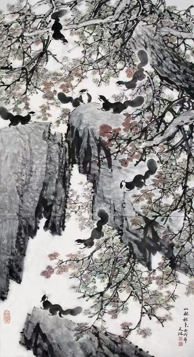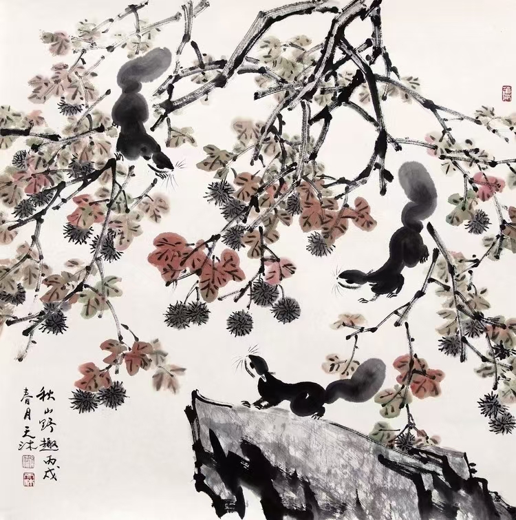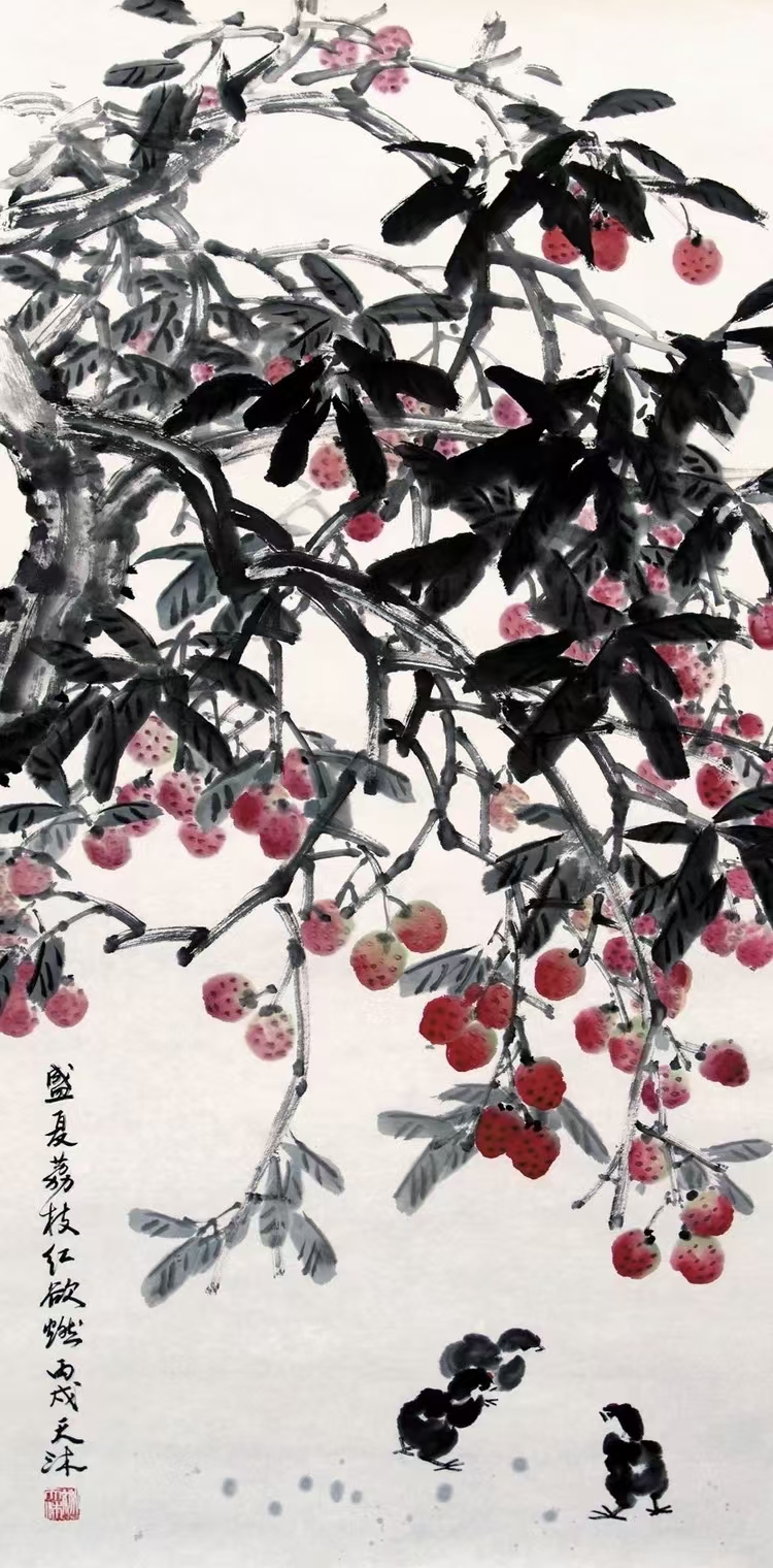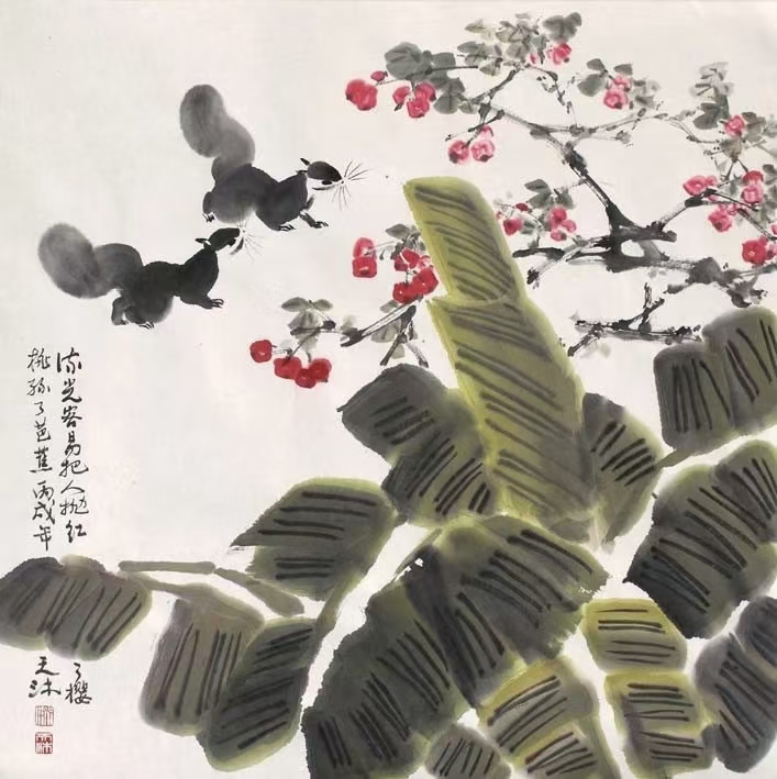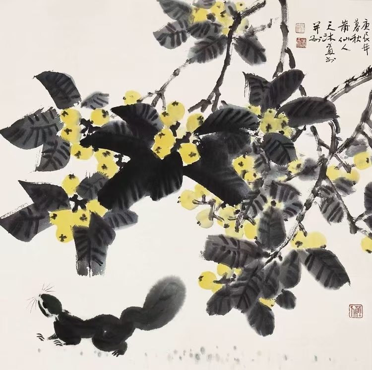 姚先生的花鸟画有他自己的特点。第一是生活气息浓厚,但又不失写意的精神。枇杷、荔枝、芭蕉、松鼠是他最喜欢表现的题材。他为什么要画诸如枇杷、荔枝这类对象,这里面寄托了他对故乡深深地眷恋之情。