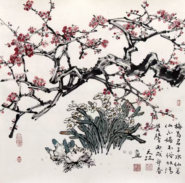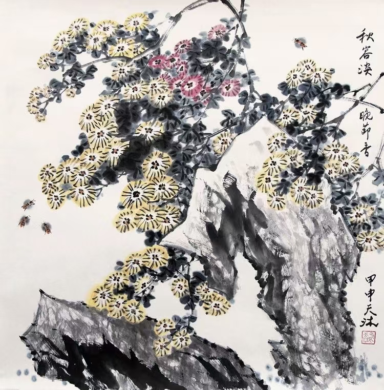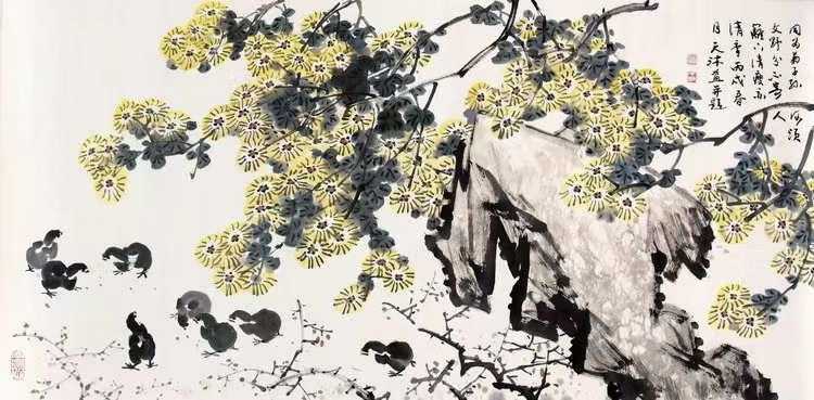 所以,他画的画,一方面情真意浓,体现出他对生活的热爱;另一方面又出其不意,在构图、题材的组合、色彩的对比上体现出审美的意境,于昂然的生机中展示出高远的意趣。第二是结构严谨,用笔挺括,有金石味。结构严谨是姚先生在绘画艺术创作中的一贯作风。在姚先生的心中,审美意识始终是非常强烈的。他的用笔,骨力十足,而且意到笔到,毫无拖泥带水的感觉。