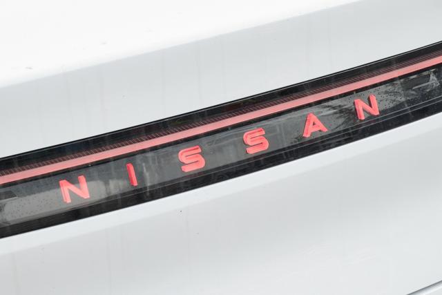 车身侧面线条过渡平滑,采用了溜背式的造型设计,结合无框车门,营造出较强的动感姿态。隐藏式门把手有助于维持侧面的整体感,并对优化空气动力学表现有一定帮助。官方给出的风阻系数为0.208Cd,这是一个相当不错的数值,理论上有助于降低行驶能耗。轮圈方面,提供了17英寸和19英寸两种规格。其中,高配车型上可见的19英寸轮圈搭配红色制动卡钳,视觉效果更显运动化。车尾的设计语言与前脸呼应,贯穿式的尾灯组是时下流行的元素,并将“NISSAN”字母标识融入其中。下方的黑色包围则增加了尾部的层次感,使其看起来不至于过于单薄。