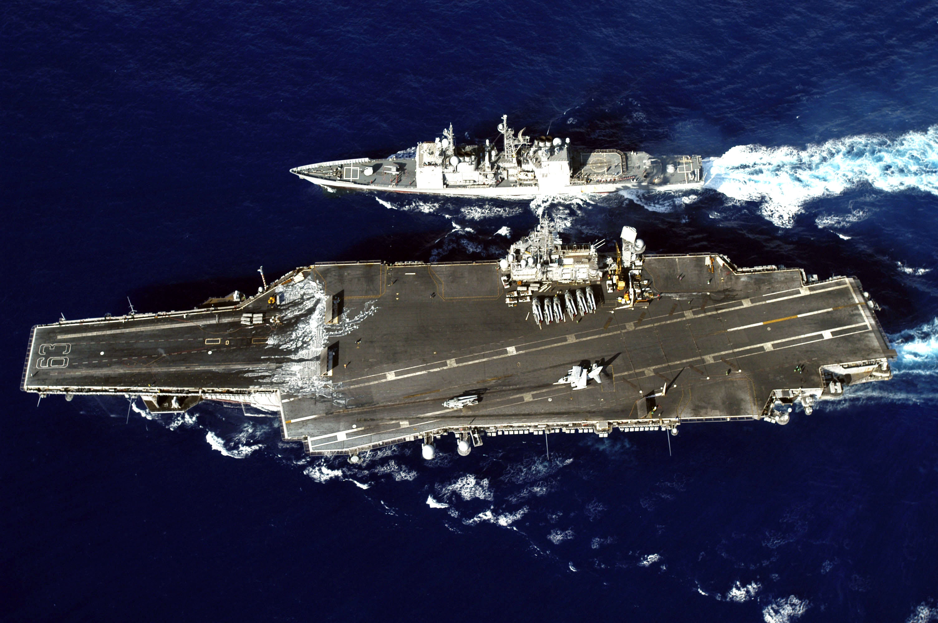 在福建舰出现以前,小鹰级即便已经退役也依旧象征着常规航母中的最高战力,一方面是该舰的基本设计确实先进,几乎将吨位利用到了极致。另一方面是美军舰载航空战力超群,当年小鹰级上就已经搭载着完整的海航空中作战体系。