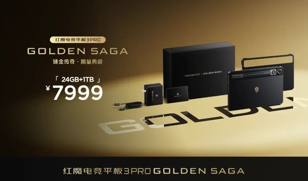 红魔电竞平板3Pro臻金传奇,月底开售,24GB+1TB售价7999元。