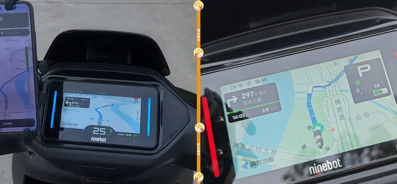 关于九号屏幕更换壁纸的内容就先说到这儿。借此机会,再跟大家聊聊九号车机导航。更新之后,导航的 UI 有了改变(此处可简单描述改变前后的样子)。不过,更新后也出现了一个让人挺郁闷的问题——没有了胎压监测功能。