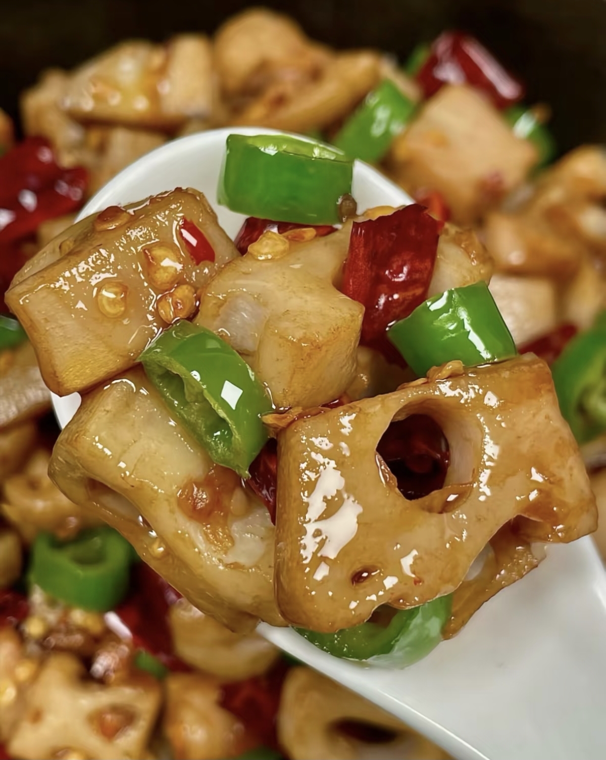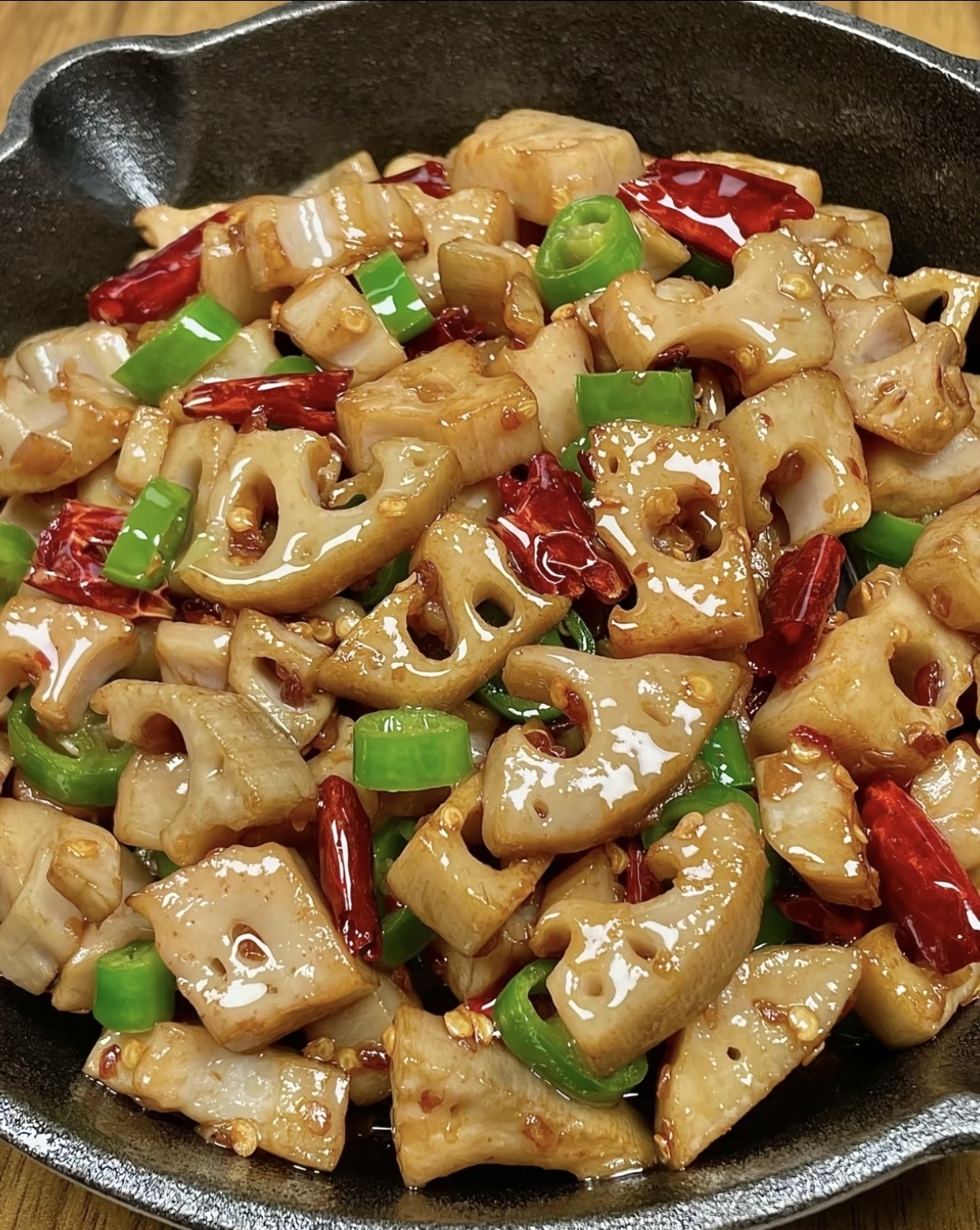 接下来,就是烹饪的关键环节了。首先,在锅中倒入适量的食用油,烧热后放入大蒜末、生姜丝和干辣椒段,用小火煸炒出香味。这一步很关键,因为调料的香气能够为藕片增添不少风味。然后,将沥干水分的藕片倒入锅中,转大火快速翻炒。藕片在热油的滋润下,逐渐变得透明,散发出诱人的光泽。