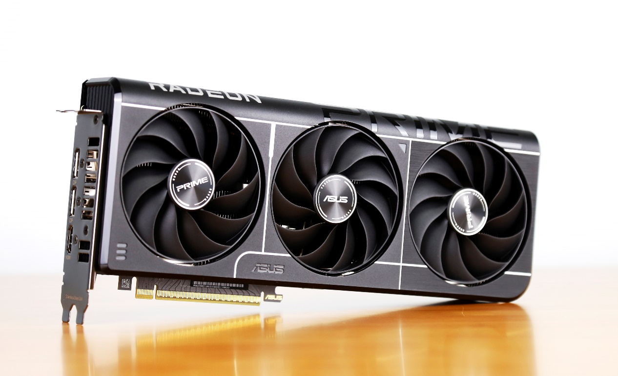 实卡赏析:RX 9060 XT性能应该很强!我们此次拿到的RX 9060 XT 8GB版和16GB版均来自华硕PRIME大师系列,两块显卡的外观完全一样。显卡采用三风扇布局,散热罩使用了黑色磨砂涂装和简单的白色条纹装饰,转角处使用圆角过渡设计,侧边阴刻亮面的PRIME Logo,增加了显卡辨识度。