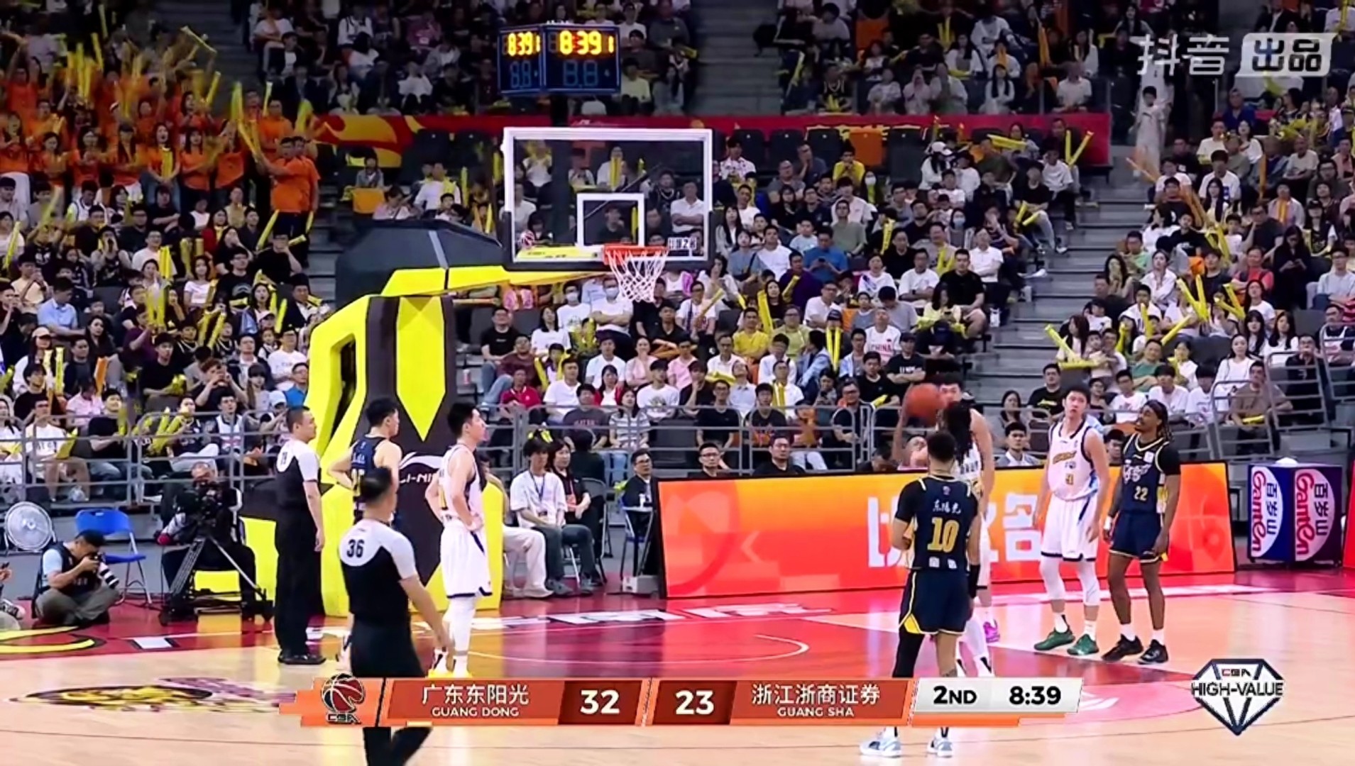 下半场比赛一上来广东摆出准五小阵容(徐杰、萨姆纳、奎因、崔永熙、王洪泽),并提速和快速打出了一个8:0的攻击波,广东将比分拉开到了13分,暂停回来之后,广厦虽然回击了几球,但广东也是有一定的韧性,三节比赛结束,广东以75:66领先了9分,值得一提的是第三节末段,杜峰由于不满裁判判罚吃了一个T!