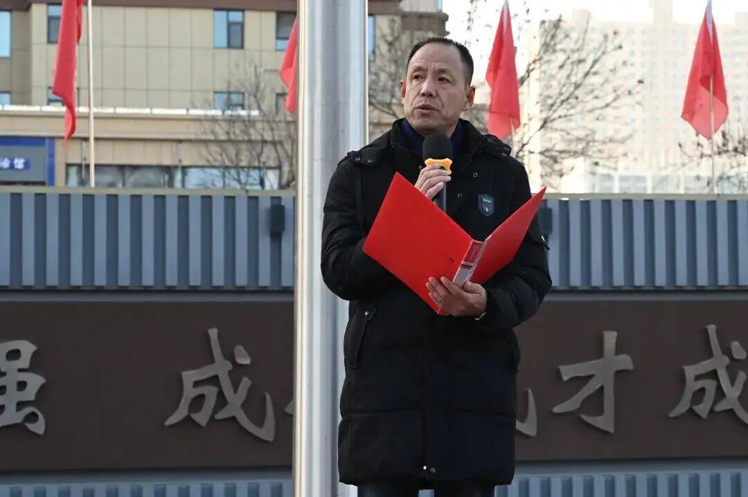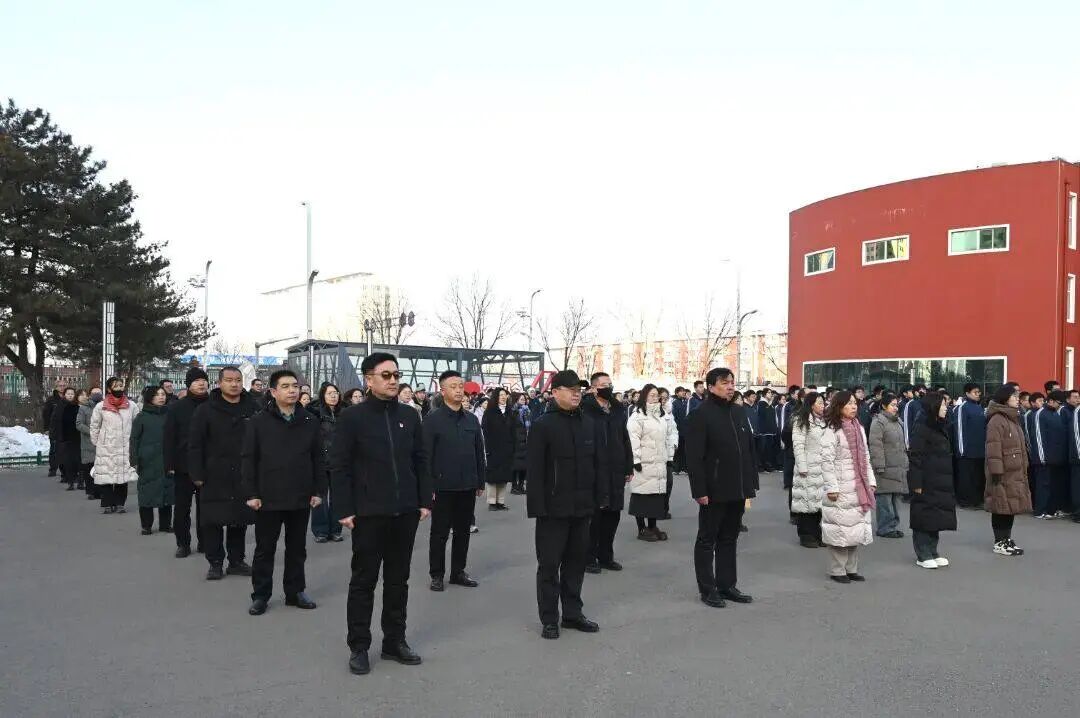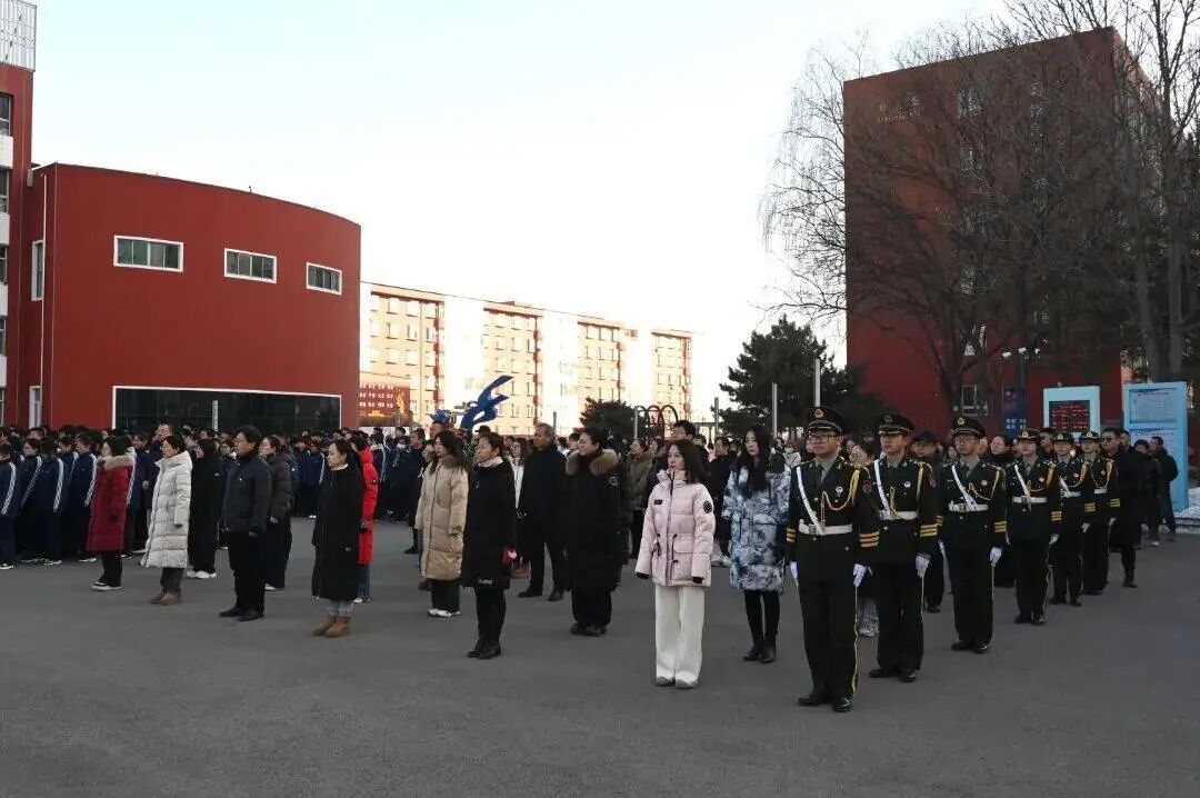 国旗护卫队迈着铿锵有力、整齐划一的步伐,护送鲜艳的五星红旗走向升旗台。在庄严雄壮的国歌声中,全体师生肃立注目,凝视五星红旗冉冉升起,迎风飘扬在校园上空,爱国情怀与集体荣誉感在每个人心中激荡。