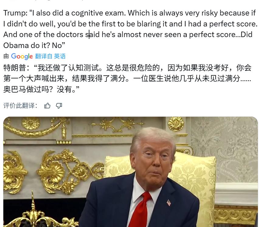 在健康体检上,也说奥巴马不如自己。