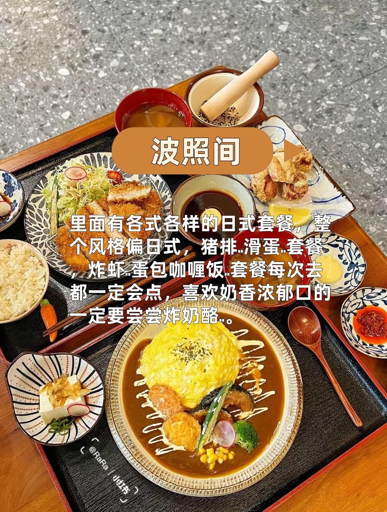 里面有各式各样的日式套餐,整个风格偏日式,猪排🥩滑蛋🍳套餐,炸虾🍤蛋包咖喱饭🍛套餐每次去都一定会点,喜欢奶香浓郁口的一定要尝尝炸奶酪🧀。