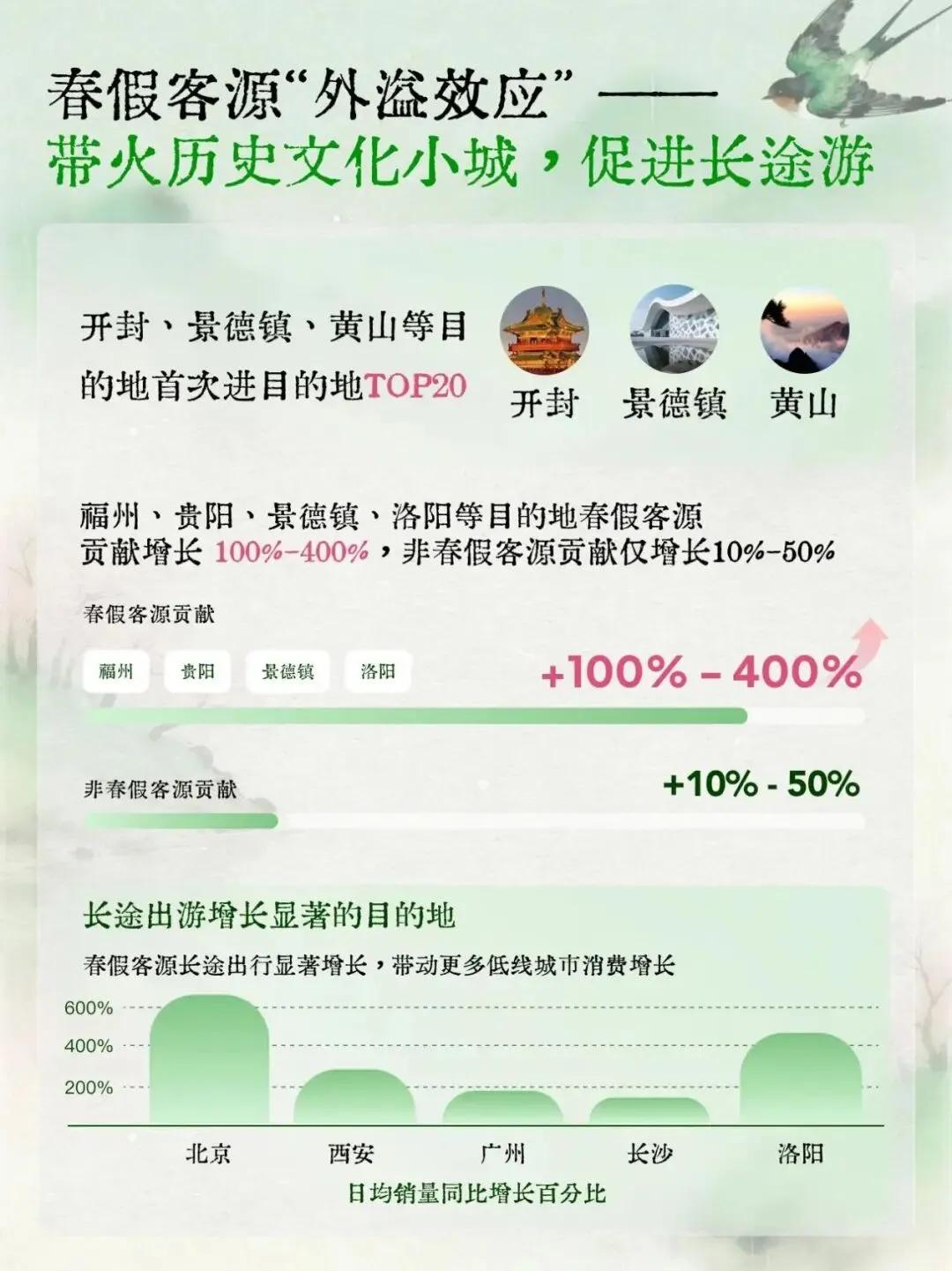 携程旅行:开封入选河南核心热门旅游城市,开封、景德镇等地首次进目的地TOP20。假期酒店、景区门票、本地体验等订单量稳步上涨,家庭游、研学游、年轻群体出游成为主流,沉浸式宋韵体验项目备受追捧。
