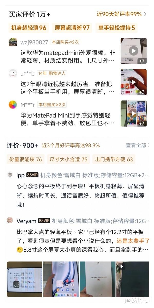 而且用户的评价几乎出奇地一致,都集中在“轻薄”和“尺寸”上,这也正是华为MatePad Mini最精准的切入点。
