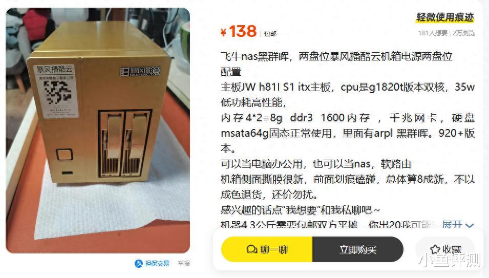 现在的存储产品价格涨得有多离谱大家心里都有数,全新硬盘价格坚挺,连带着二手NAS也跟着水涨船高。本来以为今年蹲不到什么捡漏的好东西了,结果昨晚刷二手鱼,直接让我刷到一个狠货。有人把当年的NAS神器暴风播酷云拿出来清仓了,起拍价138元?这操作属实把我整不会了。