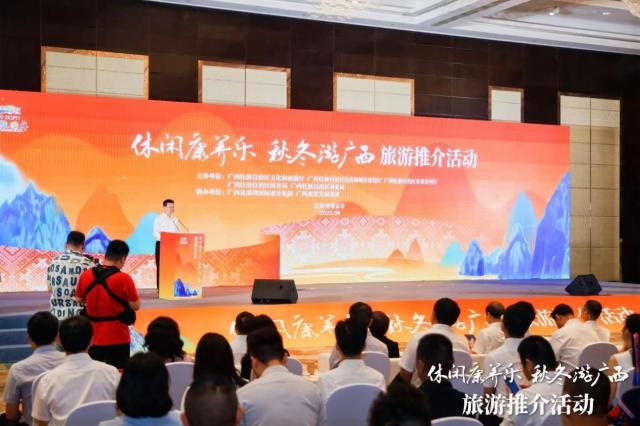 9月9日-10日,由广西壮族自治区文化和旅游厅、住房城乡建设厅、农业农村厅、体育局、林业局共同主办的“休闲康养乐 秋冬游广西”旅游推介活动在江苏省南京市举办。广西壮族自治区副主席胡帆出席推介活动并致辞。桂苏两地政府代表、文化和旅游主管部门负责人、旅游行业协会代表、旅游企业代表及新闻媒体代表等200余人参加本次推介活动。