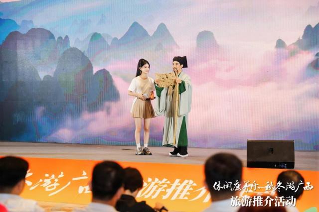 ▲情景推介,带领观众跟着“徐霞客”一起秋冬游广西