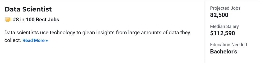 岗位职责:利用技术从大量数据中提取洞察,为企业或机构决策提供支持。 预计岗位数量:82,500 中位薪资:$112,590