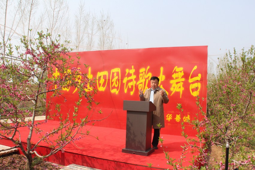 “中国乡土田园诗歌大舞台”是市文评协书记、副主席黄兆来花费10多万,在自己的百果园打造的一个新大众文艺的交流展示平台。该舞台置根田间地头,立足鲁南,扎根于乡愁,是市文评落地“新大众文艺”的一次具体践行,也是落实即将到来的“全民读书日”的一个创新活动。
