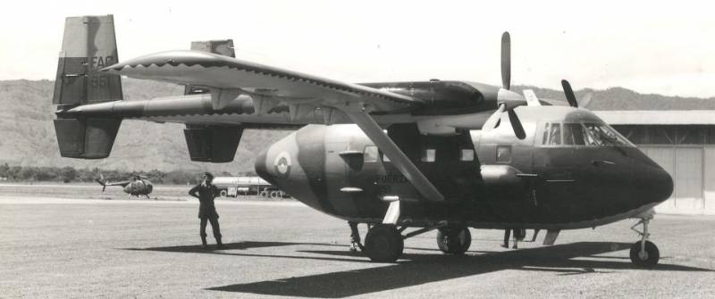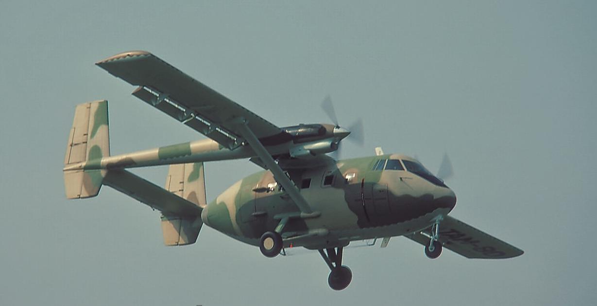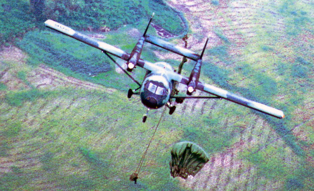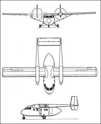 机身两侧都设有舱门,但舱门位于可打开的大尾门之上。双梁箱式机翼由两个下翼梁支撑。机翼上有 61%翼展的两段式襟翼、缝翼、副翼和可伸缩的扰流板。机翼内装有四个总容量为 1440 升的油箱。最初的动力装置由两台普拉特·惠特尼加拿大 PT6A-27 涡桨发动机组成,功率为 715 马力。不可收起的前三角式起落架配备强大的油气减震器装置,可减缓冲击以适应 最大10 厘米坑洼的崎岖跑道。低压空气减震器(3.37 公斤/平方厘米)允许在沙土跑道上起降。