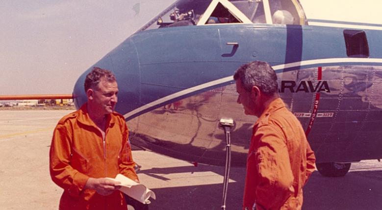 试飞员阿夫拉姆·哈科恩(左) 和原型机