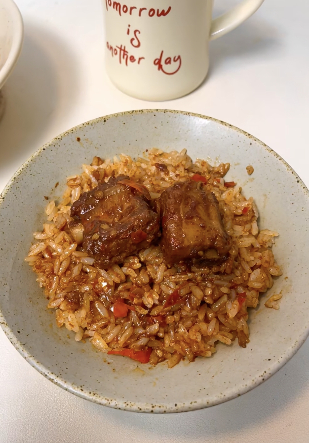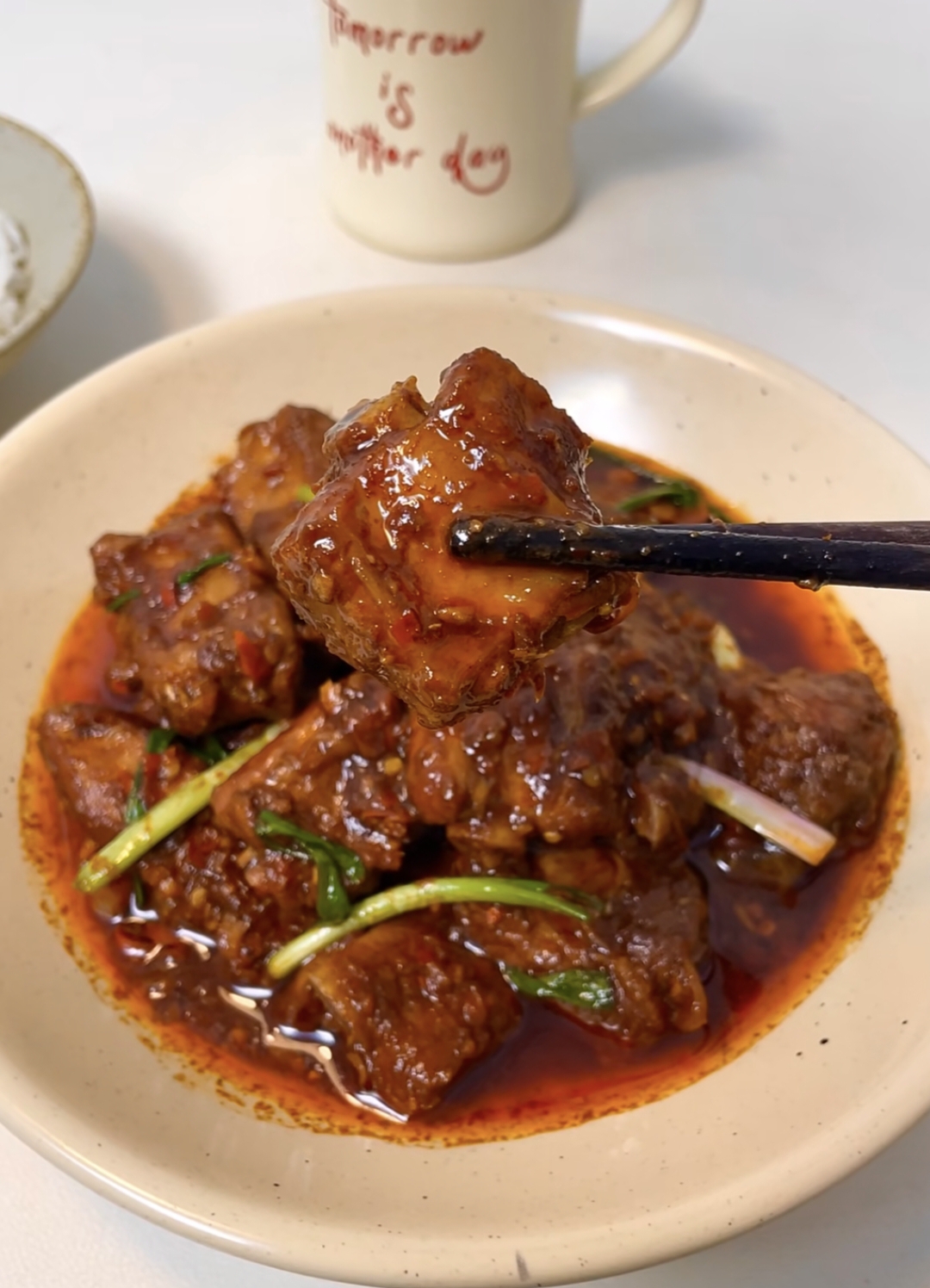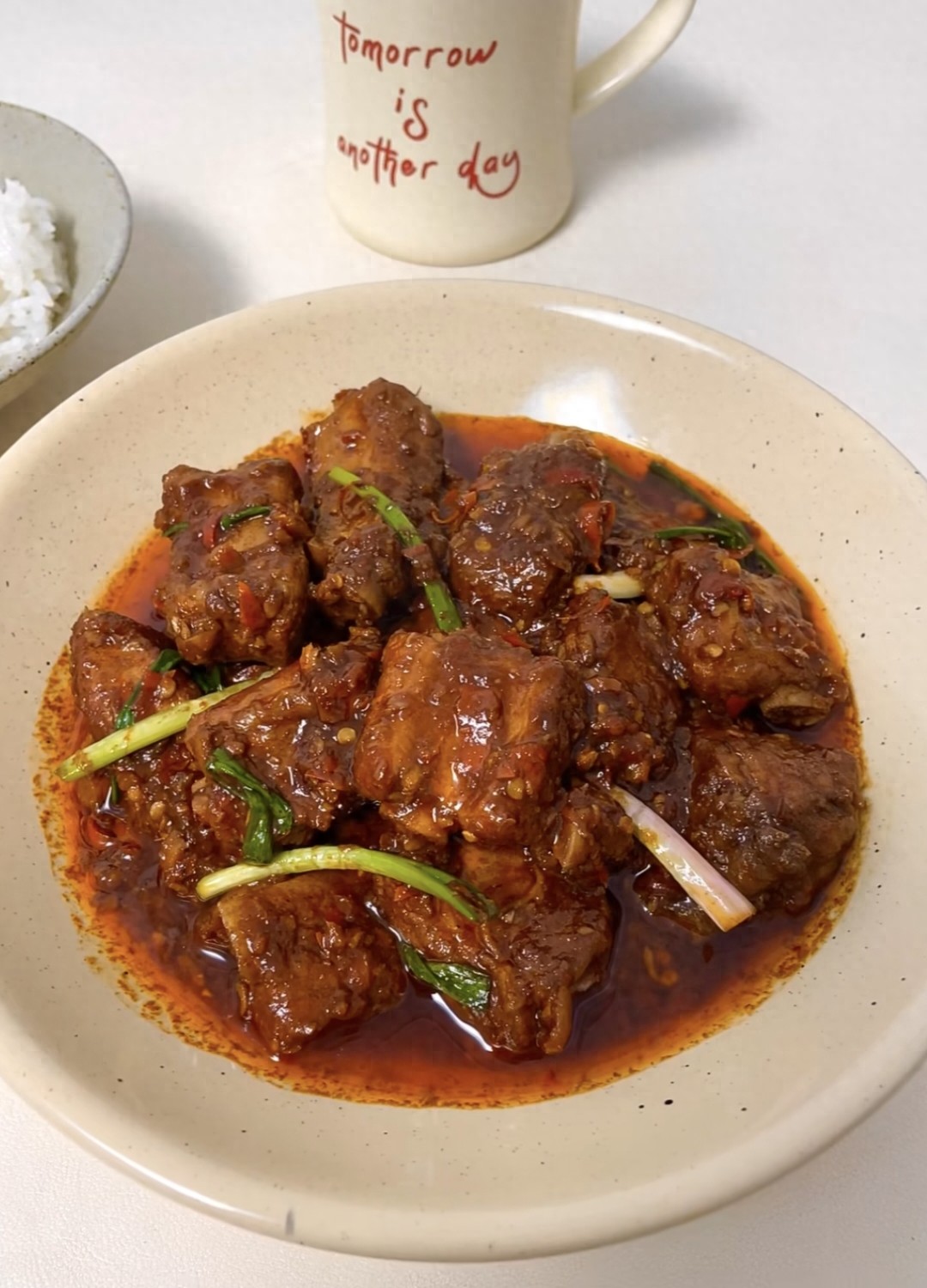 有时候,幸福就是这么简单——一盘辣炒排骨,一碗白米饭,还有家人满足的笑容。
