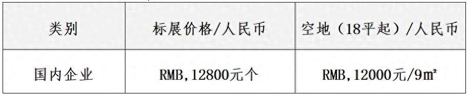 1、采用9㎡(3m×3m)国际标准展位,每个展位包括三面展板、一张洽谈桌、两把椅子、两支射灯、一个220V•5A电源插座、地毯及公司名称中文楣板,特殊要求另行收费;空地不配备任何设施(自付施工管理费)。