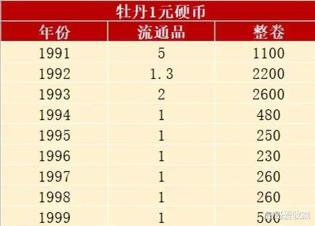 在这些流通年份中,1991年到1993年的牡丹1元,存世量相对较少一些。