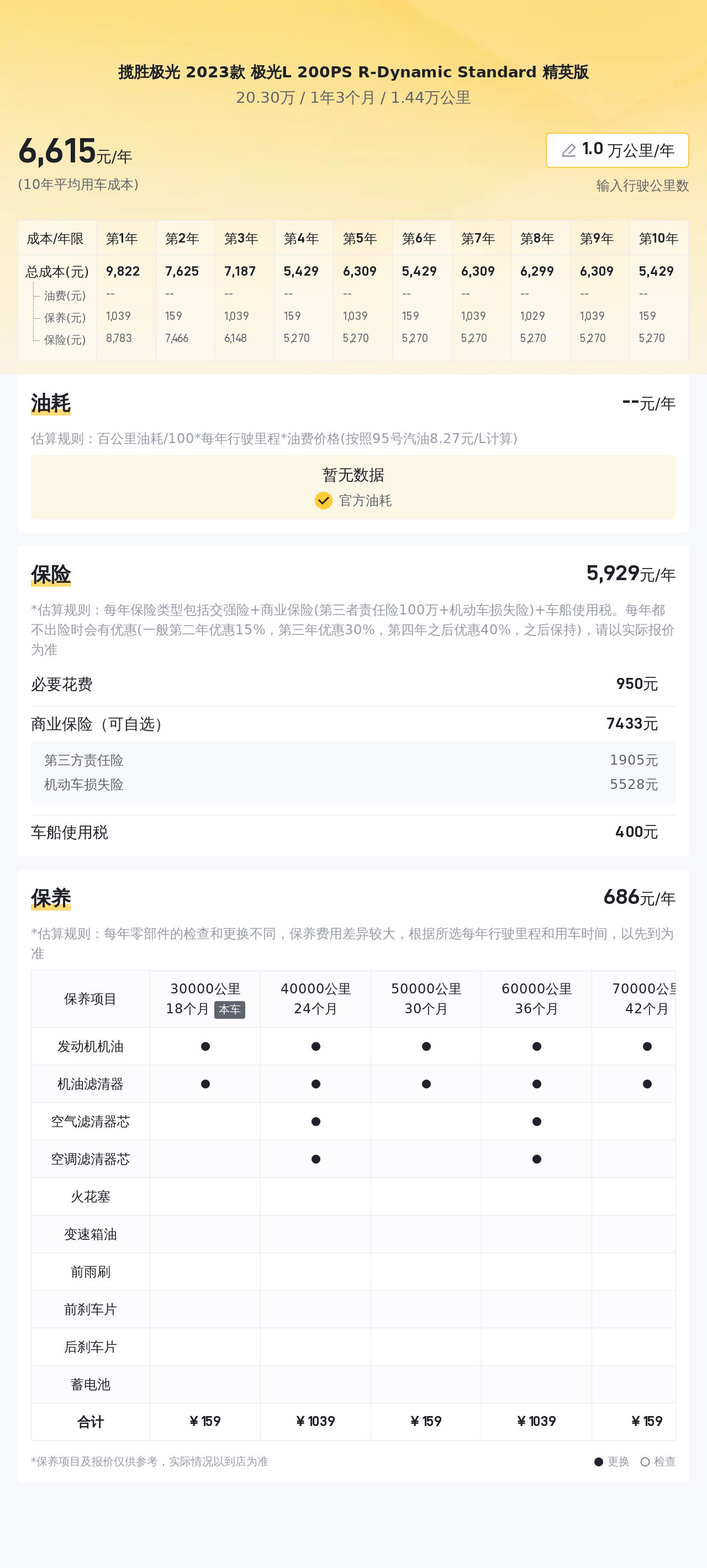 购买二手车不仅要考虑购车成本,还要合理估算日常使用开销。我们已经为您计算了该车未来三年的平均年度用车成本,助您全面衡量实际支出。