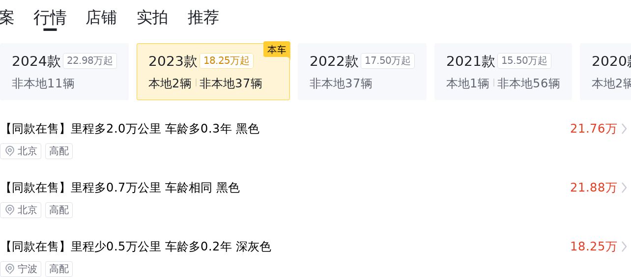 在做出购车决策时,了解市场行情是至关重要的一步。我们对这款车的市场行情进行了梳理,以供您参考。当然,最终成交价还需考虑车辆状况、售卖地点及时间等多种因素。