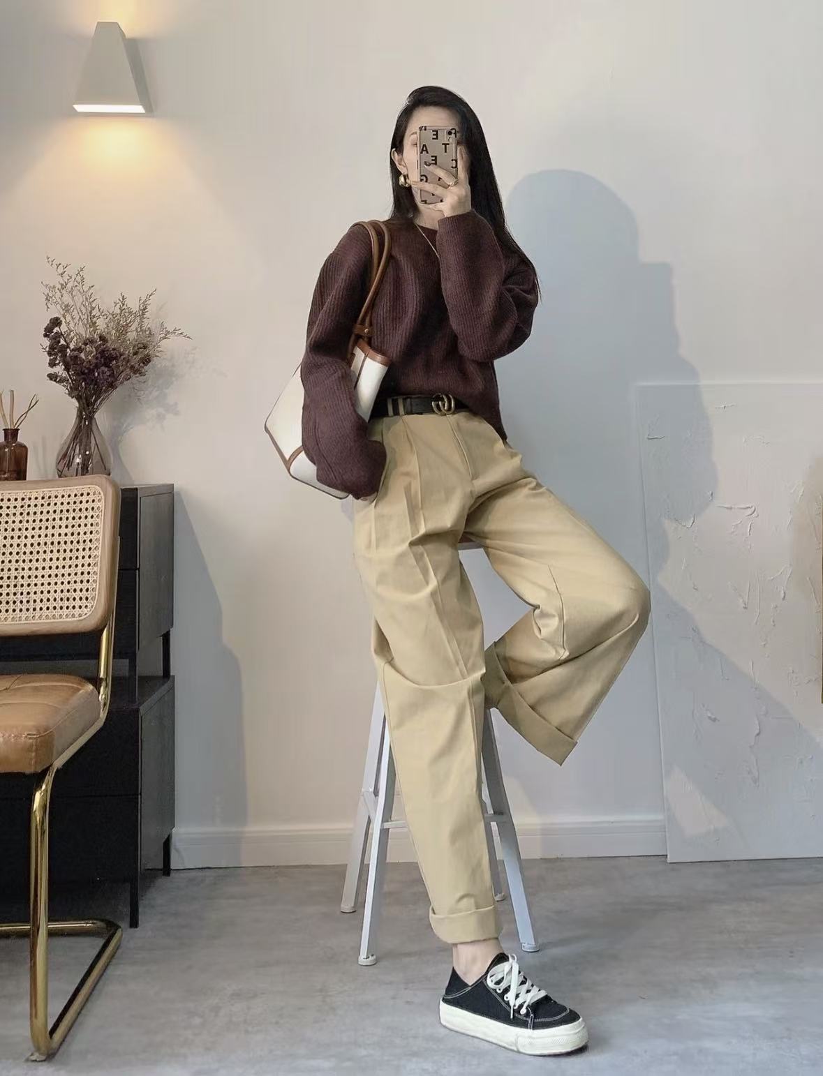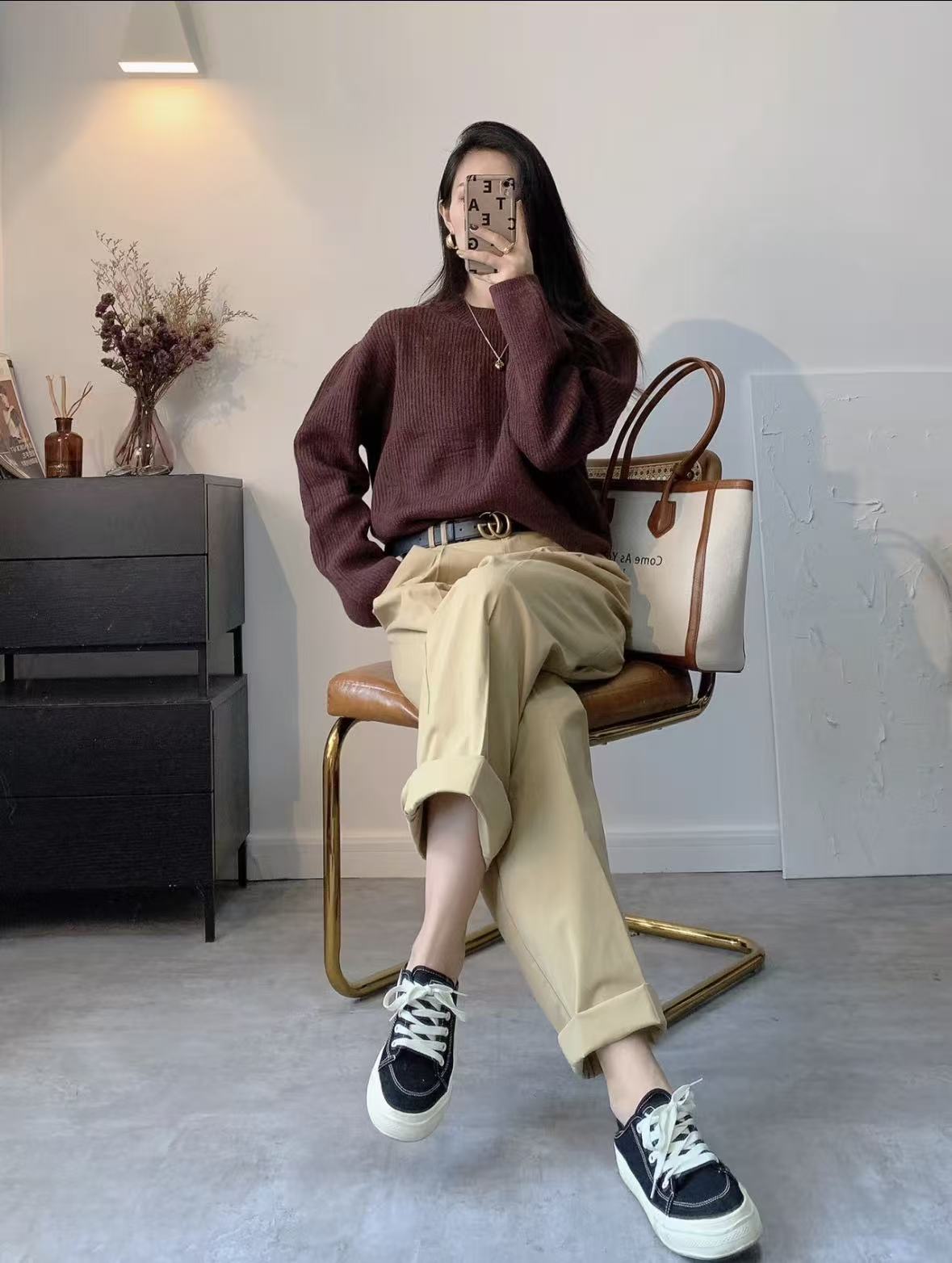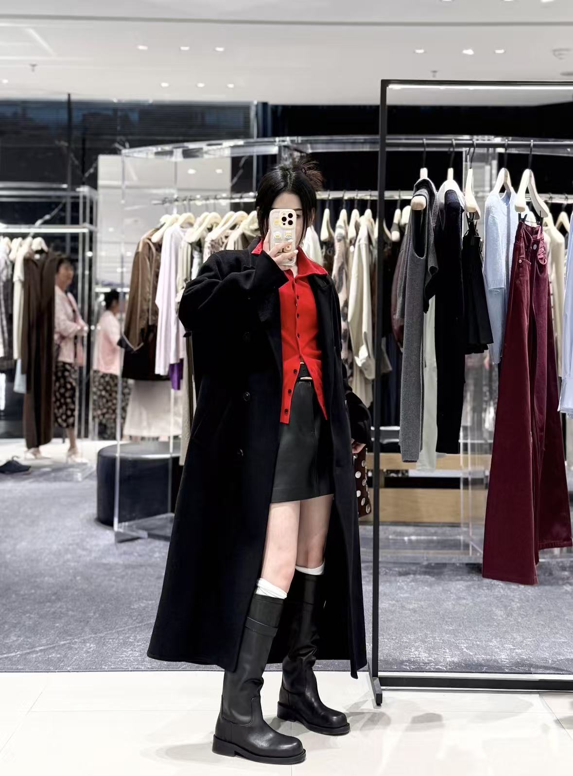 用外套隔开:穿一件红色内搭(比如毛衣),外面罩上大衣或外套,只露出领口或袖口的一点红,既有层次感,又能缓冲红色对脸部的直接影响。