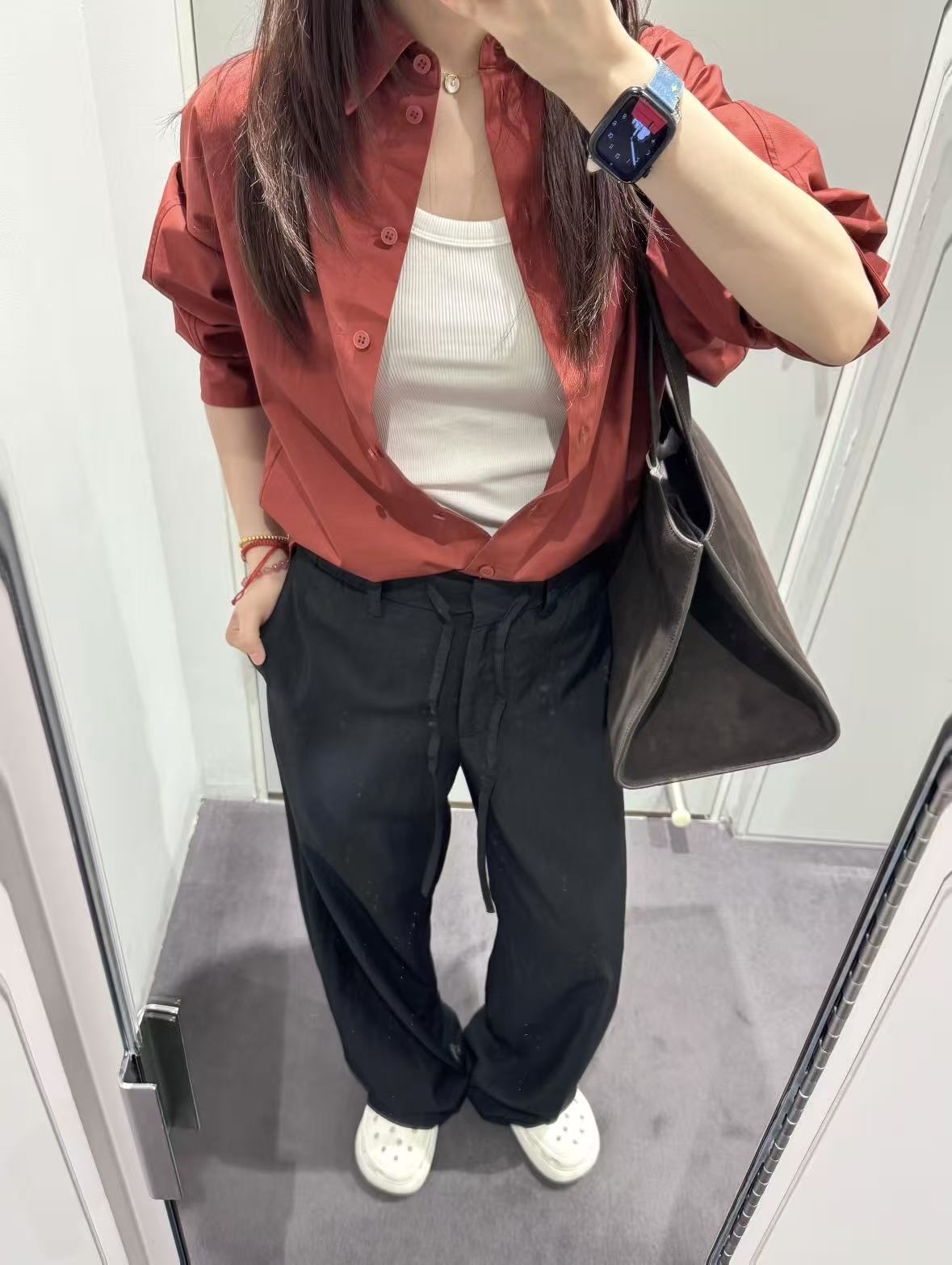 如果你戴金色首饰更好看,肤色偏象牙白、暖黄,那你大概率是暖皮。暖皮穿红色,得往“暖”里选——带点橘调、棕调、铁锈感的红色,比如番茄红、枫叶红、砖红,特别提气色,不会让你脸和衣服“打架”。