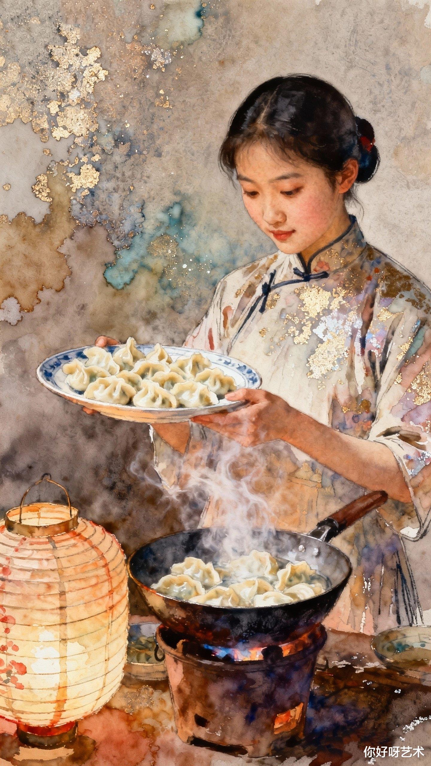 收拾画具时,我发现调色盘上的颜料已干结成块。这些凝固的色彩多像记忆中的饺子,在时光的蒸笼里慢慢定型。我忽然懂得,所谓传统,不过是把某个瞬间的温暖,用面粉包裹成永恒的形状。