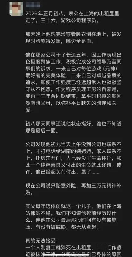今日,有关米哈游员工不幸离世的消息在网上流传。有疑似员工家属在朋友圈发文称,该员工作为程序员,已在米哈游工作5年有余,在春节复工后突然离世。