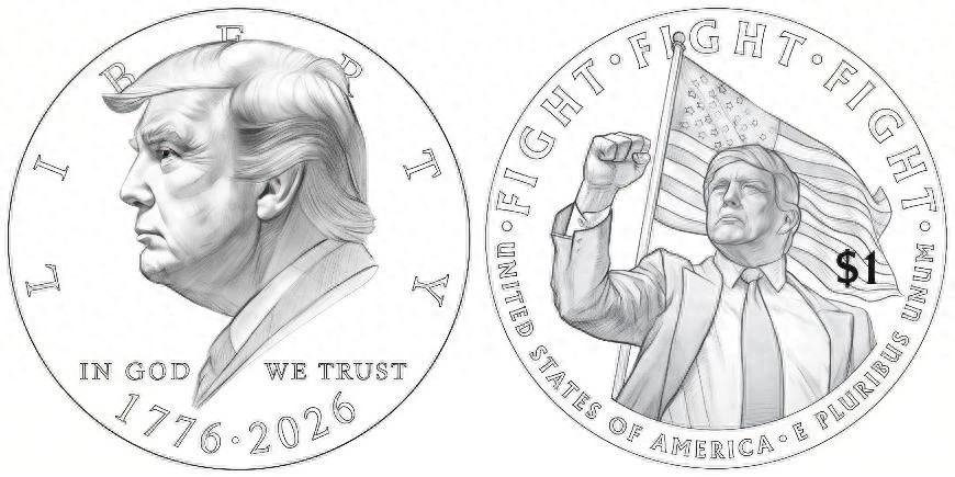 根据美国财政部官员的说法,发行1美元的纪念币是为了庆祝美国独立250周年。按照目前的设计方案,硬币的正面将会刻上特朗普的侧面头像,背面则是特朗普在宾夕法尼亚州竞选集会上,遭遇刺杀未遂时摆出的动作——握紧拳头。