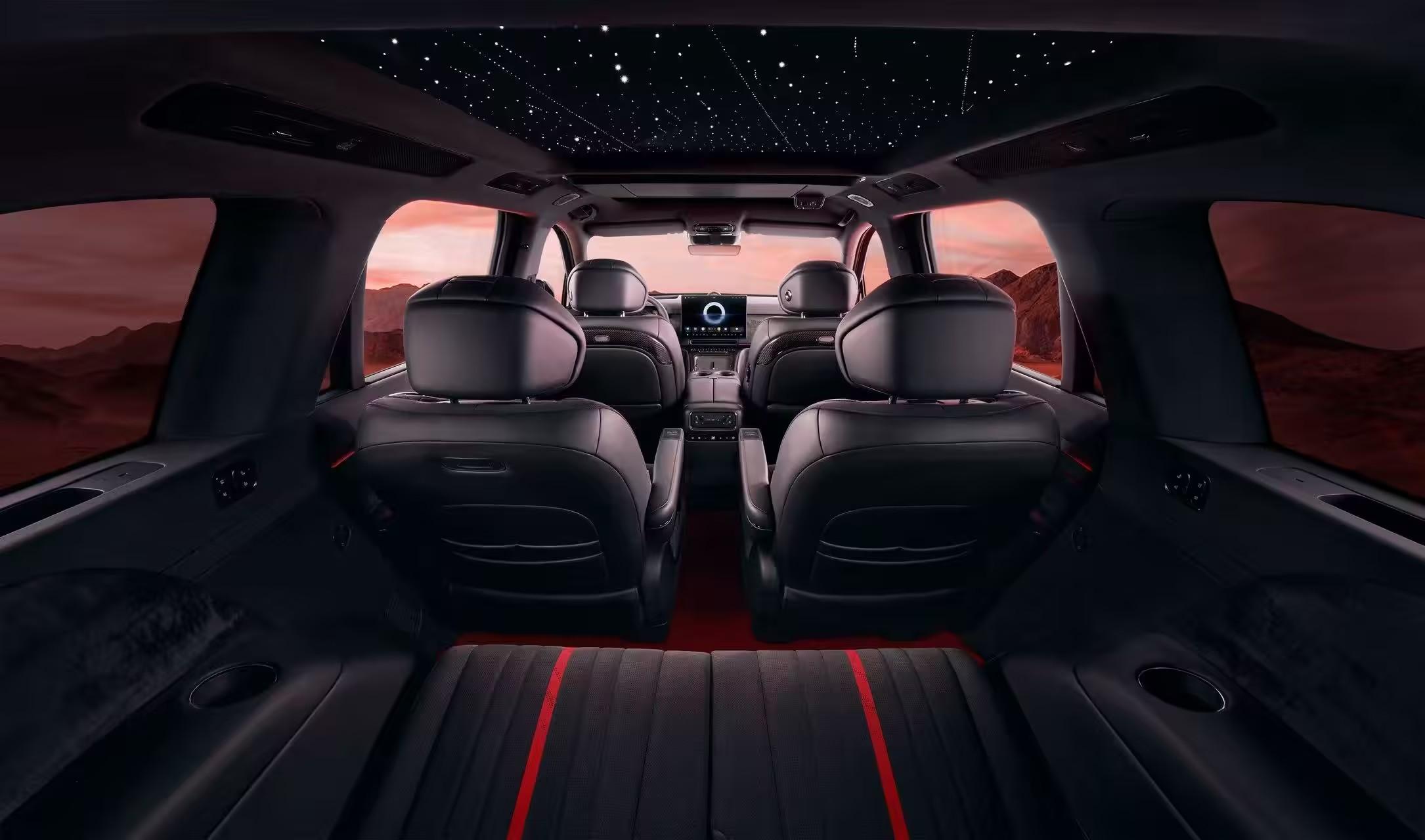 黑武士版:强化视觉与内饰质感黑武士版在外观上采用高光黑化设计,并加入碳纤维套件,强化整体视觉风格。内饰则通过黑红配色、绗缝工艺以及细节装饰提升质感,并配备星空顶设计,增强座舱氛围。