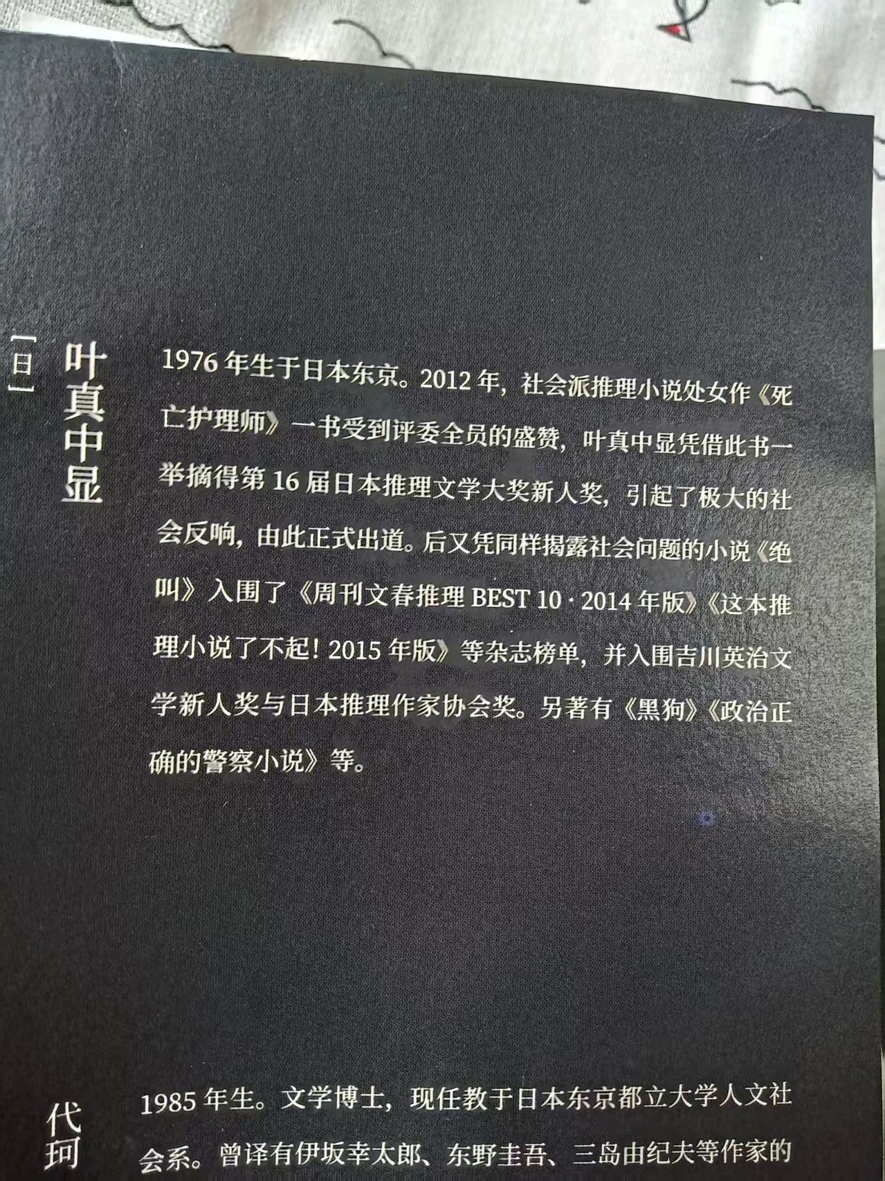 叶中真显是日本“社会派”推理文坛近年来崛起的一位新秀,他的《绝叫》《BLUE》等长篇小说在中国大受好评。