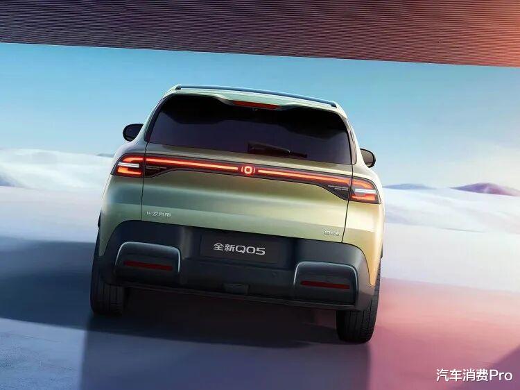 侧面看着比较紧凑,使用了半隐藏式门把手,后视镜、B柱都采用黑化处理,和亮丽的车身形成撞色设计,此次进一步提升其时尚感。从名字也知道,全新Q05定位低于Q07,属于小型SUV或者说入门紧凑SUV的定位,长宽高分别为4435/1855/1600(1595)mm,虽然三围不算大,但却有着2735mm越级的轴距表现,这也意味着它保证空间的同时,在拥堵市区驾驶、停车也会更加的方便、灵活。