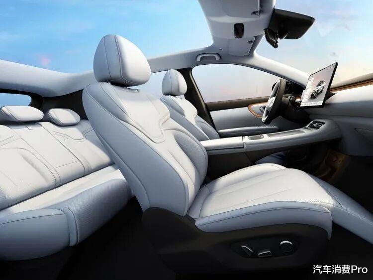 新车还配有悬浮式中央岛台,下方进行了挖空处理,提供了不错的储物空间,上方带有杯架、手机无线充电区域等等。副驾使用了女王座椅,配有腿拖,电动调节等功能。