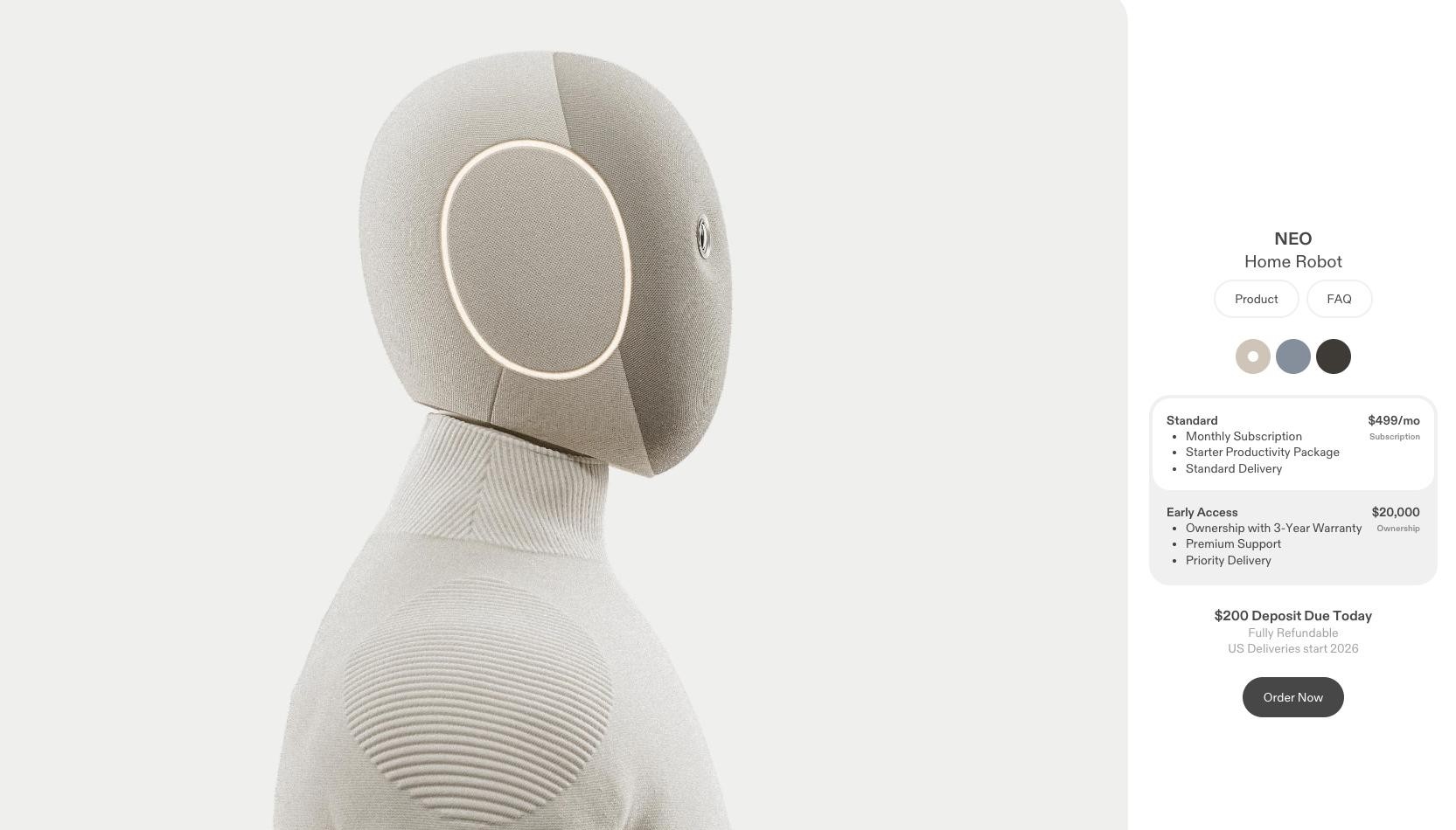 Neo出来了,1X做的家务机器人,2023年10月,不高,1.67米,也不重,30公斤,能用4个小时,打扫,叠衣服,洗碗,浇水,自己充电,都会,2万美元一台,或者一个月499美元,也不便宜啊。