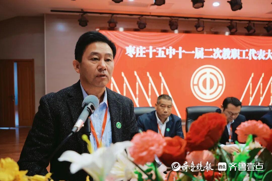 10月20日上午,枣庄市第十五中学十一届二次教职工代表大会在雄壮的国歌声中开幕。113名正式代表与2名特邀代表肩负重托、齐聚一堂,以高度的责任感和使命感,共同为学校高质量发展建言献策,擘画新征程的宏伟蓝图。教职工代表大会主席团全体成员出席会议。