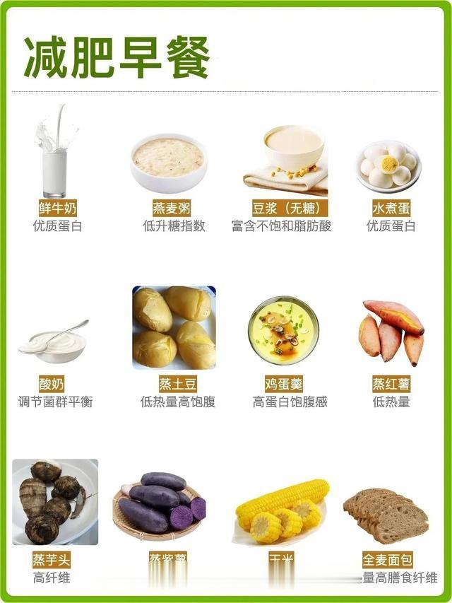 早餐可以吃一点苹果、草莓、西柚、奇异果等水果,或者生菜、西洋菜、白菜、菜心之类的蔬菜,可以补充维生素、膳食纤维、矿物质,促进肠道蠕动,有助于减脂。