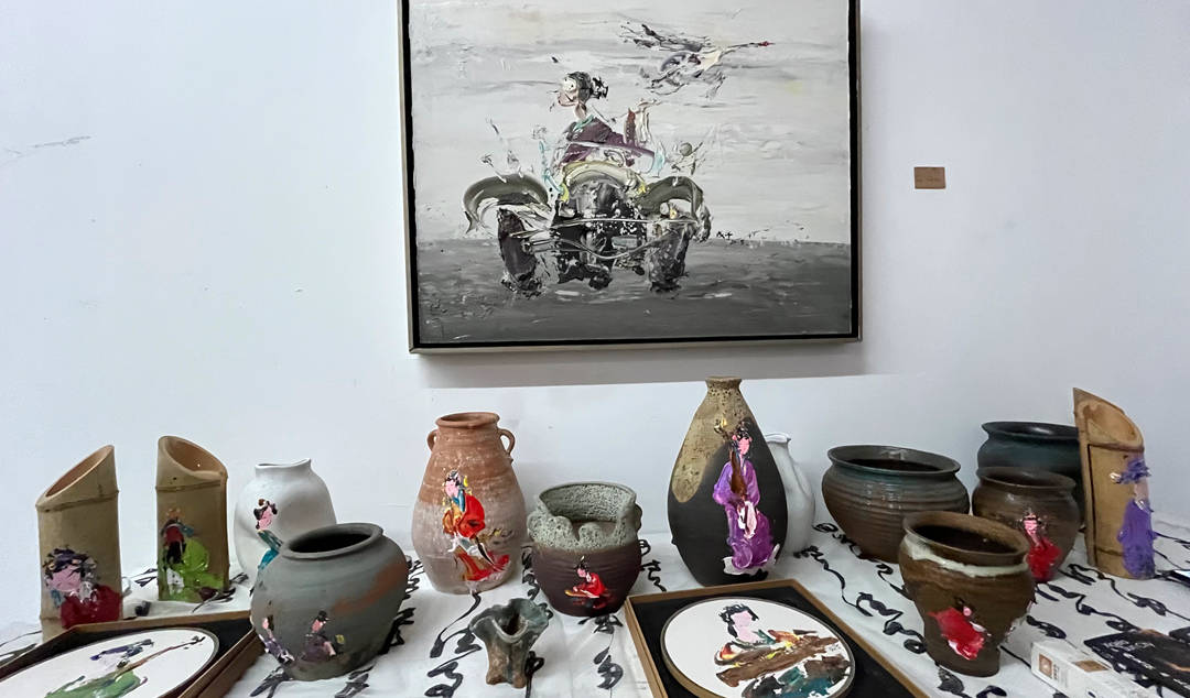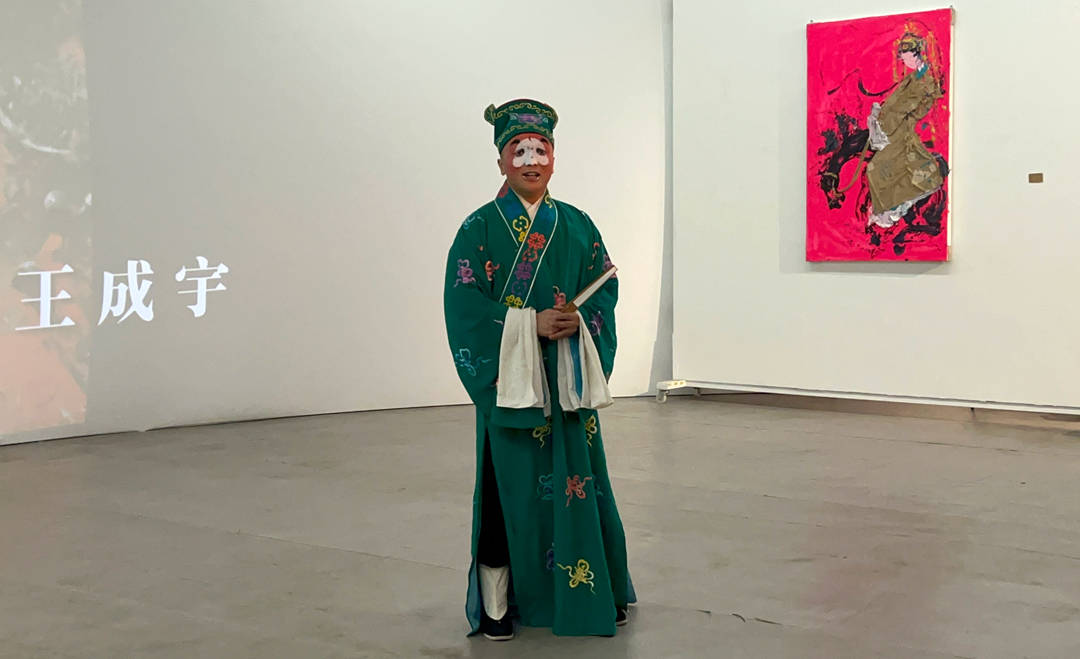 展览开场简洁有力,戏曲演员身着戏服登台,水袖翩跹、唱腔婉转,穿梭于油画作品间,与画作中的戏曲人物遥相呼应,带领观众一秒入戏,直观感受戏曲与绘画的跨界交融之美。