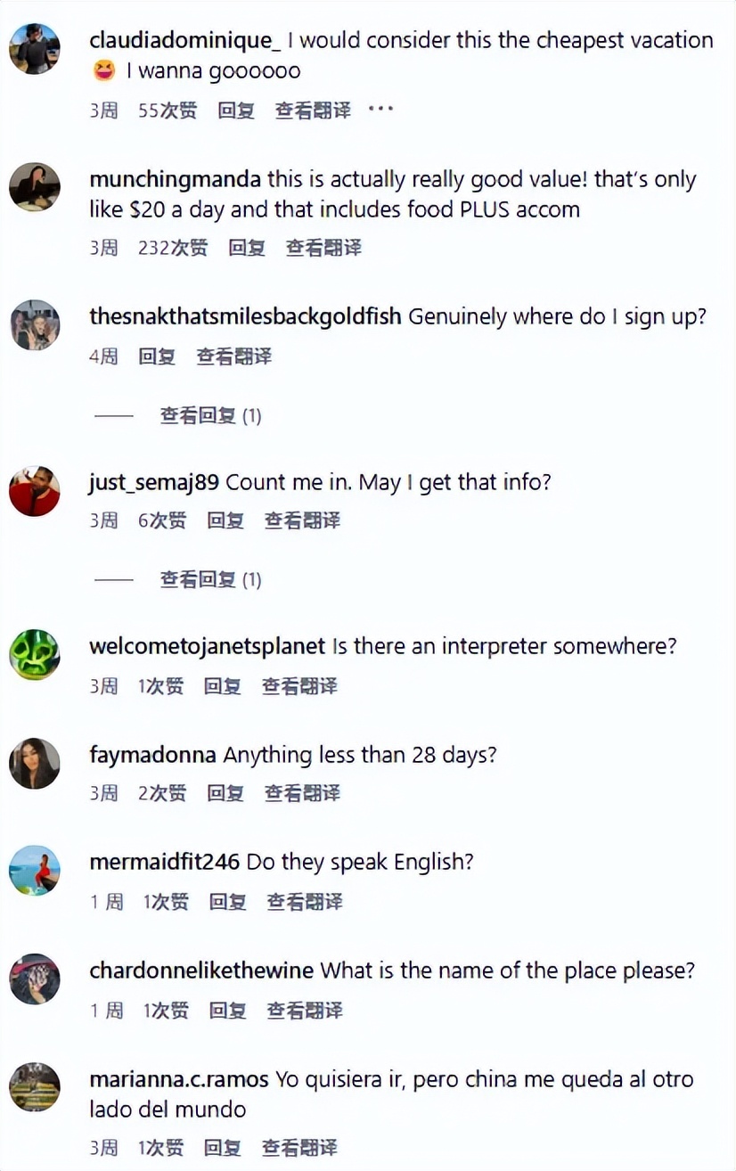 “这简直可以算是最便宜的度假了 我好想去啊啊啊。”