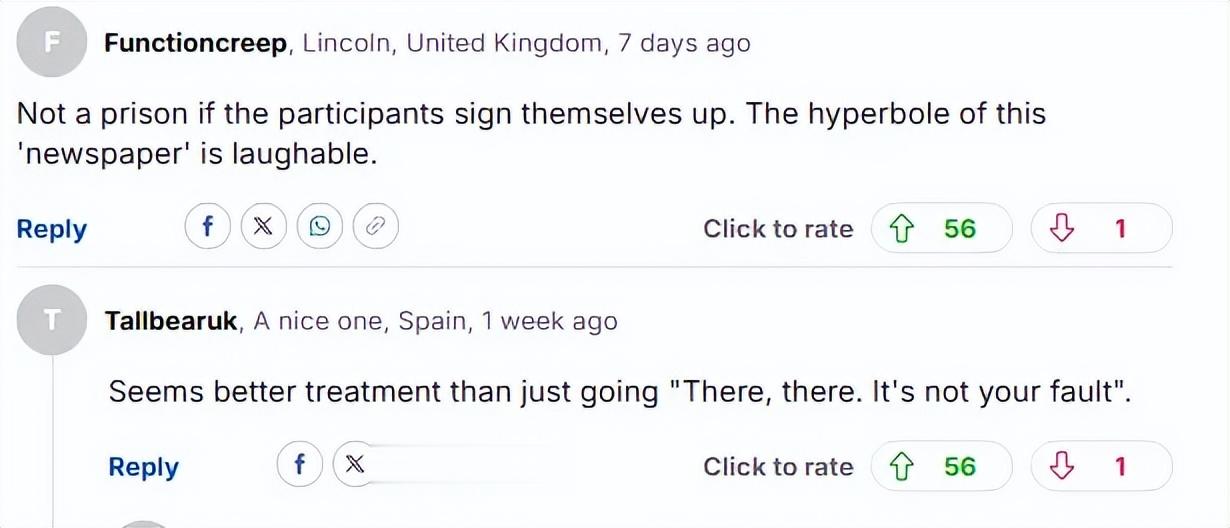 但是,哪怕是用阴阳怪气的语气转述,刻意将这个减肥营比作真监狱,渲染可怕氛围,新闻评论也还是超绝大翻车了……