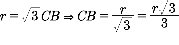 用r表示半径OB。此外,CB=½OC(因为∠COB=30°)