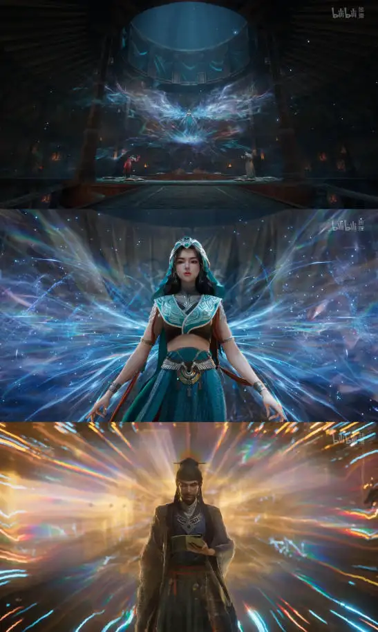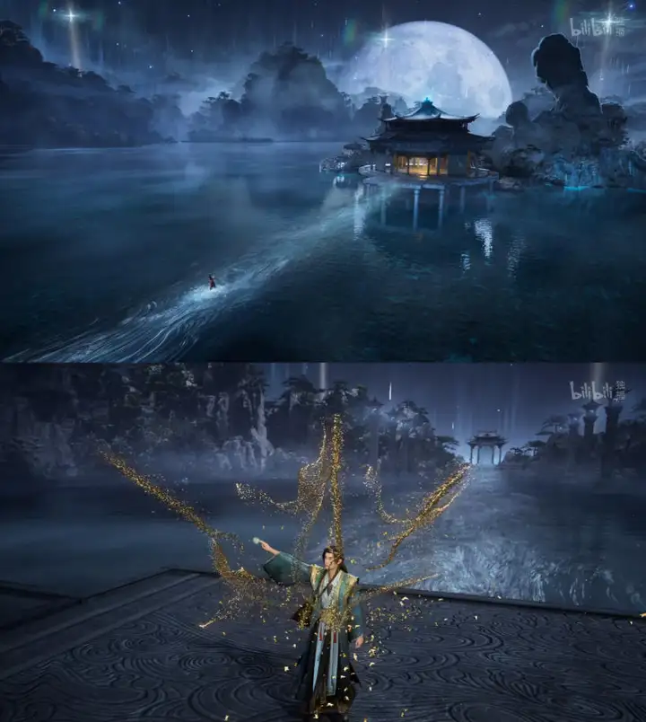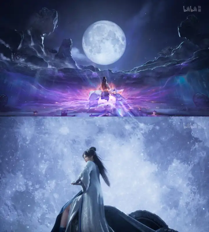 这里还有一段南宫婉对着皎月修炼素女轮回功的场景——这季动画不太可能会给紫灵加戏了,主要戏份得让给正宫,想看紫灵等坠魔谷吧。