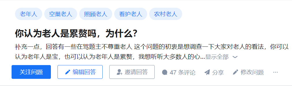 某乎上看到一个700多万人浏览的问题,问的是:你认为老人是累赘吗,为什么?