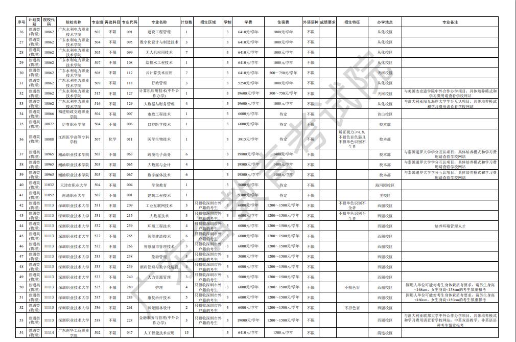 深圳职业技术大学首选物理共缺额补录43人,12个专业缺额,工业互联网技术缺额3人、大数据技术缺额3人、环境工程技术缺额4人、智能建造技术缺额6人、智慧城市管理技术缺额3人、旅游管理缺额3人、酒店管理与数字化运营缺额4人、人力资源管理缺额3人、护理缺额4人、康复治疗技术缺额5人、风景园林设计缺额2人、金融服务与管理(中外合作办学)缺额3人。