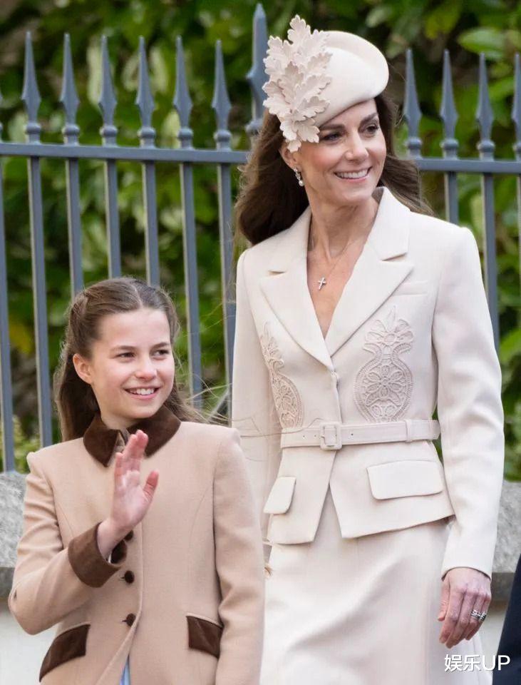 仪式结束后,媒体捕捉到了一个无比温馨的细节。44岁的凯特王妃与她唯一的女儿夏洛特公主,自然而然地牵起了手,一起离开教堂。这个简单的动作,胜过千言万语,将母女间的亲密展露无遗。而更值得玩味的是夏洛特当日的造型。她身穿一件米色镶棕边的外套,经证实出自品牌凯瑟琳·沃克——这正是她妈妈凯特王妃最钟爱的设计师之一。这件外套并非首次亮相,夏洛特早在2025年圣诞节就穿过它。这种“重复利用衣橱旧衣”的时尚选择,完全继承了王妃本人经典的“旧衣新穿”风格。夏洛特将这件已拥有7个月的外套,内搭Self-Portrait的淡蓝色连衣裙。巧的是,凯特王妃当日的米白色套装也来自同一品牌。母女俩在时尚品味上的默契,似乎已不言而喻。